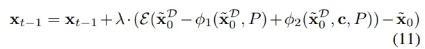 - x_{t-1} : reverse diffusion에서 얻은 latent