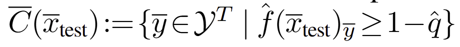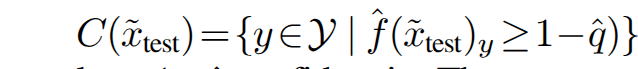 + 수식이 많아 복잡한데... 쉽게 풀면 1 - \epsilon 을 보장하기 위한 영역을 선별하기 위해 생성한 표본 데이터 셋 ~ calibration set으로부터 confidence를 생성하고 이에 대한 empirical quantile을 선정하여 이를 threshold로 사용합니다.