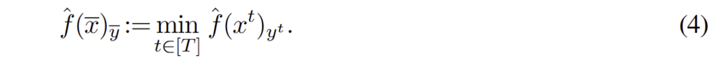 - Prediction set generation: CP를 활용하여 \tilde{x}^t 로부터 주어진 each prediction y에 대한 LLM's confidence \hat{f}(\tilde{x}^t)_y 에 따라 subset C(\tilde{x}^t)를 선택합니다.