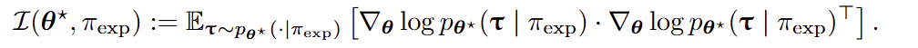 앞서 related work의 System Identification 파트에서 Fisher Information matrix를 언급하였는데, 이는 exploration policy \pi_{exp}를 선택하는 데 중요하다고 합니다. 따라서 이에 대하여 간단하게 설명을 해보면 다음과 같습니다.