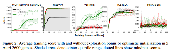 본 연구 이전의 DQN은 count-based 방식을 사용했지만, 저자는 DQN에 pseudo-counts와 density modeling을 적용하는 것을 통해 count-based 방식을 보완하는 방법을 제안합니다. 실제로 Atari 게임(옛날 콘솔 게임)에서 효과가 있었음을 보이며 저자가 제안하는 방법의 강력함을 보입니다. 특히, ‘몬테주마의 복수’라는 강화학습으로 해결하기 어렵다고 악명높은 게임에서도 어느정도 대응할 수 있는 방법임을 보이고 있습니다.