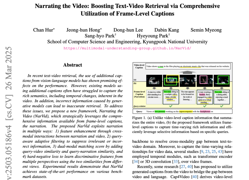 오늘도 Text-Video Retrieval 논문에 대해 리뷰해겠습니다. 리뷰하려는 논문은 CVPR 2025 에 Accept 되었고, Arxiv 버전으로 리뷰를 진행하려고 합니다.