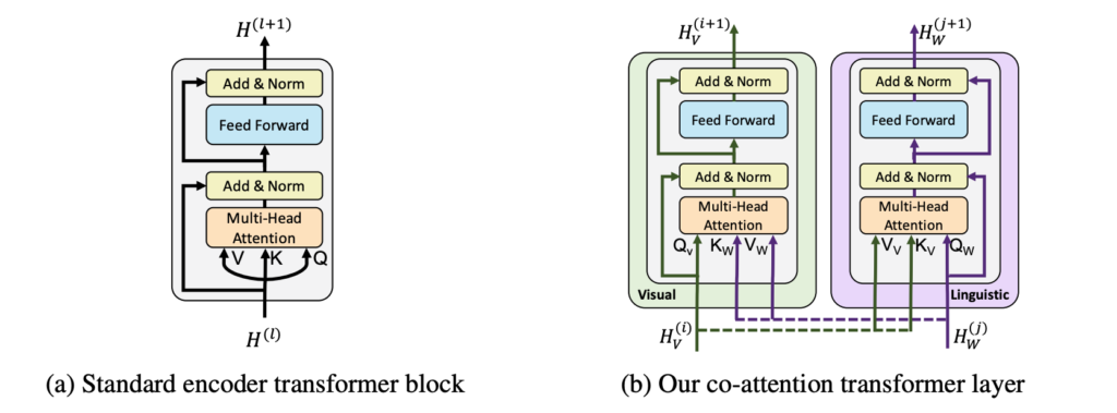이 때, co-attention은 상단 그림 (b) 같이 ViLBERT에서 사용한 co-attention 구조를 사용하였습니다. 그리고 이 co-attention은 수식 (2) 처럼 표기하겠습니다. (저자가 왜 이걸 사용했는지는 구체적으로 밝히진 않았으나, 두 모달리티 사이의 정보를 더 잘 섞(?)는데 자주 사용된 기존 기법인 여러 개의 attention layer를 사용한거겠죠?) 이 텍스트-비디오 간의 co-attention 구조를 통해, query와 연관성이 높은 프레임-캡션 쌍의 특징을 강조하고, 그렇지 않은 정보는 상대적으로 억제하는 방식으로 featur를 개선시키고자 한 것이죠.