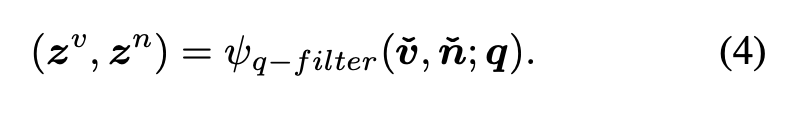 이와 같이 처리된 \check{\boldsymbol{v}}, \check{\boldsymbol{n}} 은 여전히 프레임 단위의 시퀀스 형태를 유지하고 있기 때문에, 이후 단계에서 query-relevant한 정보만을 선별하는 filtering 과정에 그대로 활용될 수 있다고 합니다.
