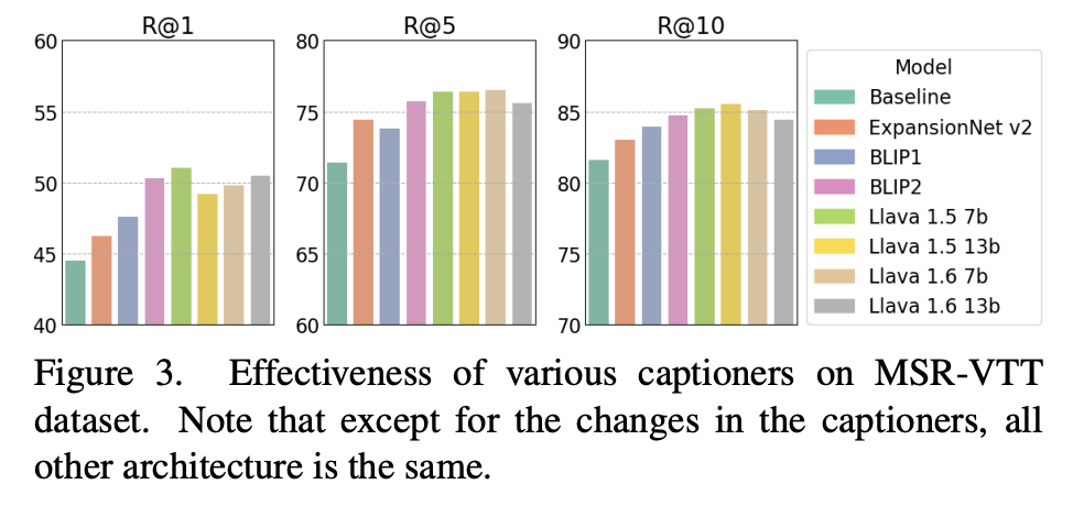 - Dataset: MSR-VTT, MSVD, VATEX, DiDeMo