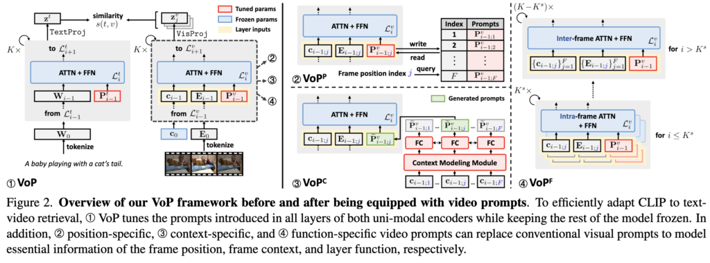 - 비디오 정보를 활용하기 위해 frame position, frame context, layer function 등의 세 가지 비디오 프롬프트를 개발