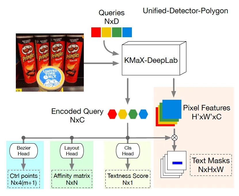 이제 저자가 제안한 Unified Detector Polygon을 살펴보도록 하겠습니다. 이 UDP는 앞서 설명드린 Unified Detector가 갖고 있는 한계를 극복하기 위해 제안된 것인데요. 기존 Unified Detector는 text instance를 검출할 때 mask만을 사용했었는데, 이 방식은 곡선 형태로 휘어진 text line을 제대로 보정하거나 표현하는 데 어려움이 있었다고 합니다. 결국 detection 이후 recognition을 수행하기 위해서는 detection 결과를 보정하는 등의 복잡한 후처리 과정이 필요했다는 말이 되겠죠.