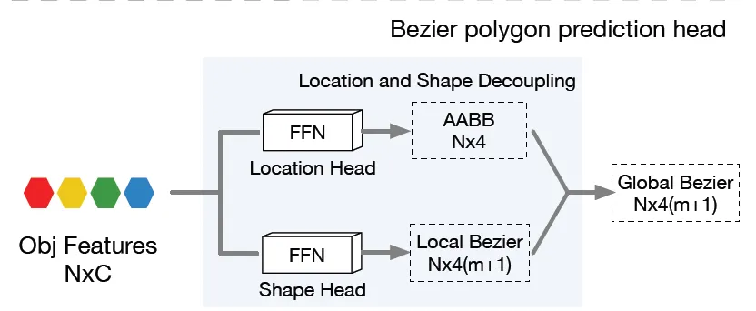 이런 문제를 해결하기 위해, 본 논문에서는 encoding된 object query를 입력으로 하는 Bezier polygon head를 추가하였습니다.