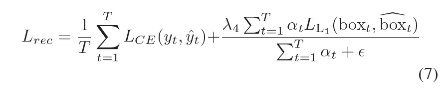 여기서 T는 text line안에 포함되어 있는 문자들의 개수이구요. \alpha_t는 특정 문자에 대해 bbox gt가 존재하는지 여부를 나타내는 indicator입니다.