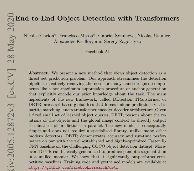 오늘 리뷰할 논문은 이전에 작성했던 TESTR 모델의 근간이 되는 DETR입니다. TESTR을 읽을 때 DETR에 대해서 알고자 간단하게 블로그만을 참고했었는데요 깊게 알고자 논문을 읽고 리뷰까지 하게 되었습니다. TESTR에서 부족했던 설명을 본 리뷰로 보충하고자 합니다.