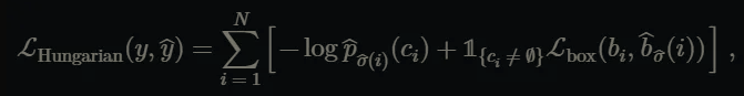 그리고 최종적인 Hungarian loss는 다음과 같이 모든 permutation에 대해 정의됩니다.