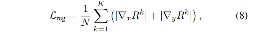 이렇게 설계한 두 loss를 통해 MDE의 구조 정보를 모델이 잘 따르도록 만들 수 있는데, 여기서 단순히 L1 loss를 사용하게 되면 물체의 경계 부분이 흐릿하게 표현될 수 있습니다. 그래서 여느 depth task에서 많이들 설계하는 방식으로 gradient 기반의 loss를 식(8)과 같이 정의하여 함께 사용합니다.