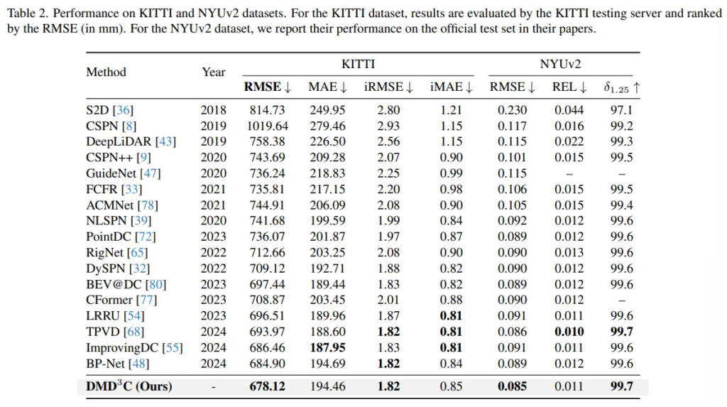 - KITTI-DC 데이터에서 SOTA를 달성하면서 방법론의 효과를 입증