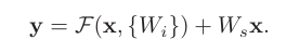 저자가 구성한 building block은 이런 형태입니다. 다만 F와 x의 차원이 다르다면 linear projection인 Ws를 추가할 수 있습니다.