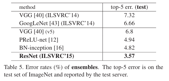 저자는 top-5 error on the test set 에서 ILSVRC 2015 SOTA를 달성하게 됩니다.