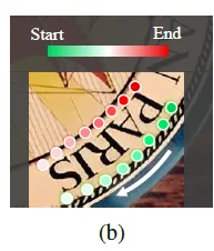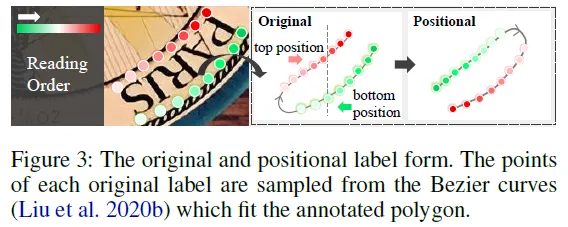 저자는 position label을 방향 구분 없이 이미지를 기준으로 텍스트의 위쪽을 top side 아래쪽을 bottom side로 보아 annotation에 있는 GT 좌표를 다시 정렬했습니다. 실제 코드를 확인해보면 기존 json 파일을 가지고 좌표 정렬만을 제안하는 방법으로 변경하는 코드가 하나로 구현돼 있습니다. 그러니까 위의 (b) 이미지에서 예시를 들자면 ‘PARIS’란 단어가 거꾸로 있다고 해서 아래부분을 top으로 보지 않겠단 얘기입니다. 글자 S위의 점 즉 항상 왼쪽 상단 점을 starting point로 두겠다는 것입니다.