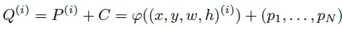 P^(i)는 바운딩 박스의 좌표에 대해서 encoding한 positional query를 C^(i)는 content query로 모든 텍스트 쿼리가 공유하는 쿼리 임베딩입니다. 모든 control point point query가 같은 content query를 공유하지만 positional query는 달리 받아 각자 다른 텍스트를 가리키게 됩니다.