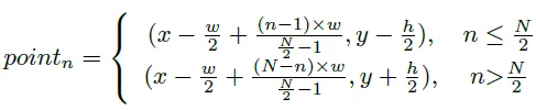 각 점이 상하에 같은 개수로 있고 중앙점을 기준으로 일반적으로 거의 같은 거리만큼 떨어져 있다는 것을 전제로 다음과 같이 각 포인트의 x, y 값이 계산됩니다.