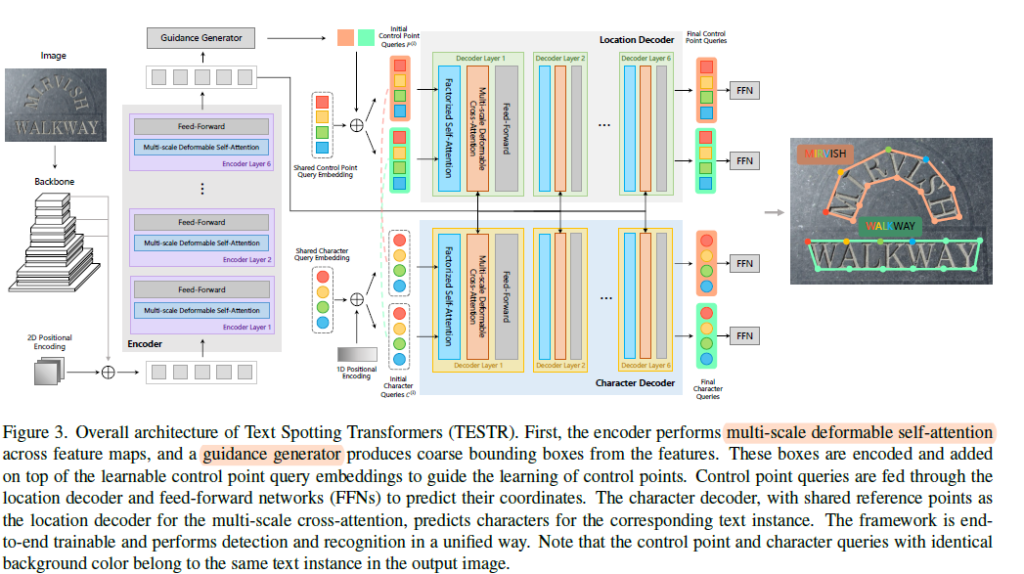 모든 텍스트에 대한 쿼리는 각각 location decoder, character decoder의 입력으로 들어간 후 여러 차례의 attention을 수행하며 학습됩니다.