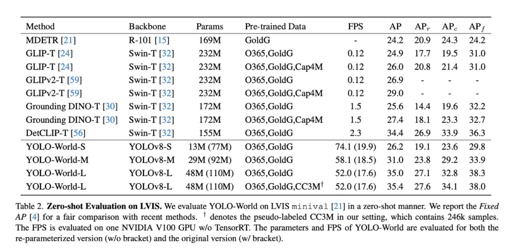 결과적으로는 YOLO-World는 아래와 같은 성능을 나타냅니다.