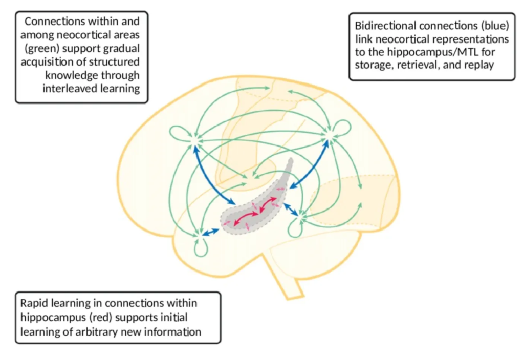 본 논문의 저자가 이렇게 task-invariant한 knowledge를 학습하는 prompt와 task-specific한 knowledge를 학습하도록 나눈 아이디어의 motivation은 위에 보이는 그림이 뇌과학 분야의 complementary Learning System에서 발표한 연구와 관련이 되어 있습니다. 구체적으로, 사람이 이전 지식을 잊지 않고 계속 continual하게 학습을 할 때는 사람의 해마가 실제 specific한 정보를 저장하는 데 도움을 주고, 뇌피실이 좀 더 일밙벅인 지식을 학습하도록 기능이 나눠져 있기 때문이라는 점입니다.