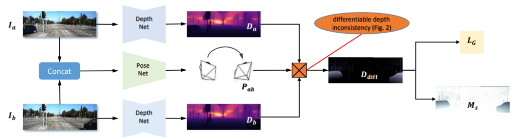 이는 self-sup의 학습이 static region에 대해서는 정확한 depth를 학습할 수 있을 것이기에 static region에 대한 depth 값을 dynamic region에게 guide 해주고자 함입니다.