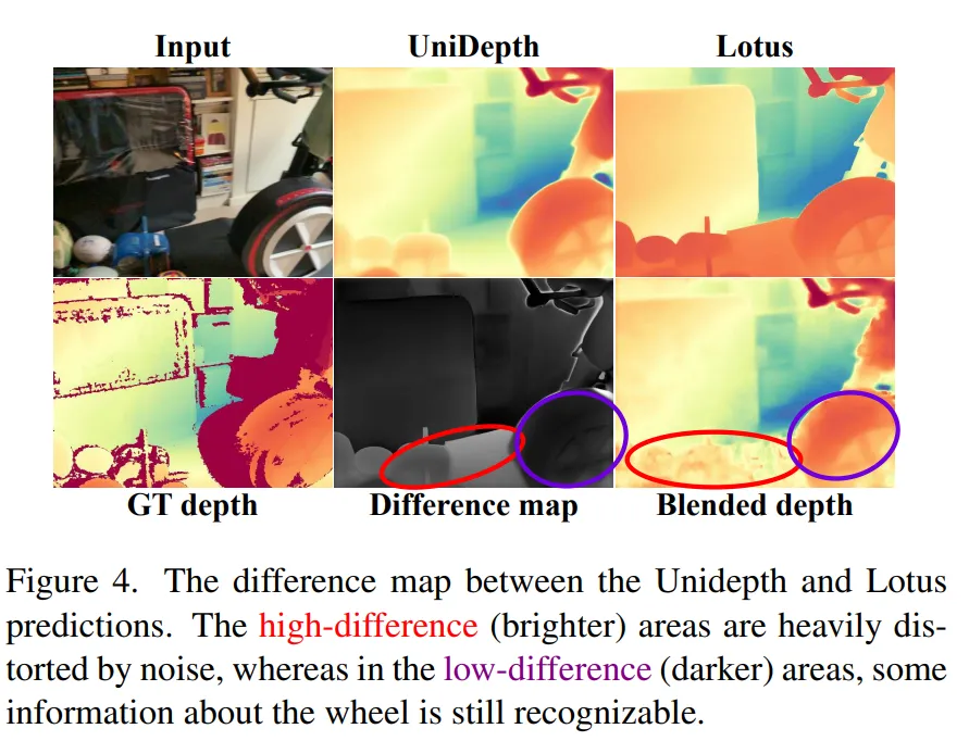 Fig.4를 보면, Unidepth와 Lotus의 출력을 동일한 범위로 정규화를 합니다. 그 다음 동일한 픽셀에서의 차이를 각각 계산해서 difference map을 만듭니다.