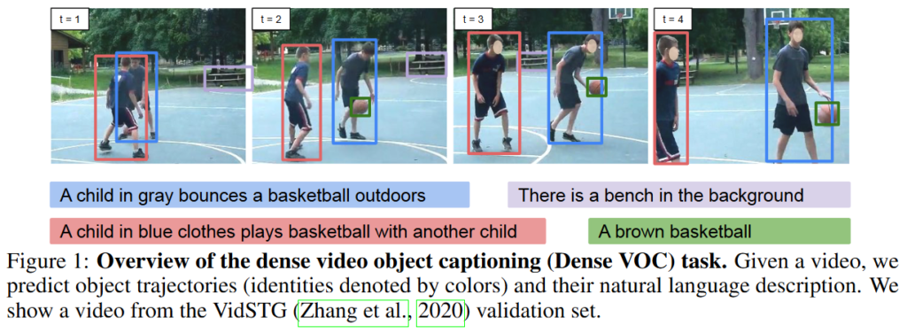 Figure 1.에서 보이는 것과 같이 Dense VOC는 object detection, object captioning, object tracking을 모두 수행하며 더 나아가 video에서도 수행 가능한 연구입니다.
