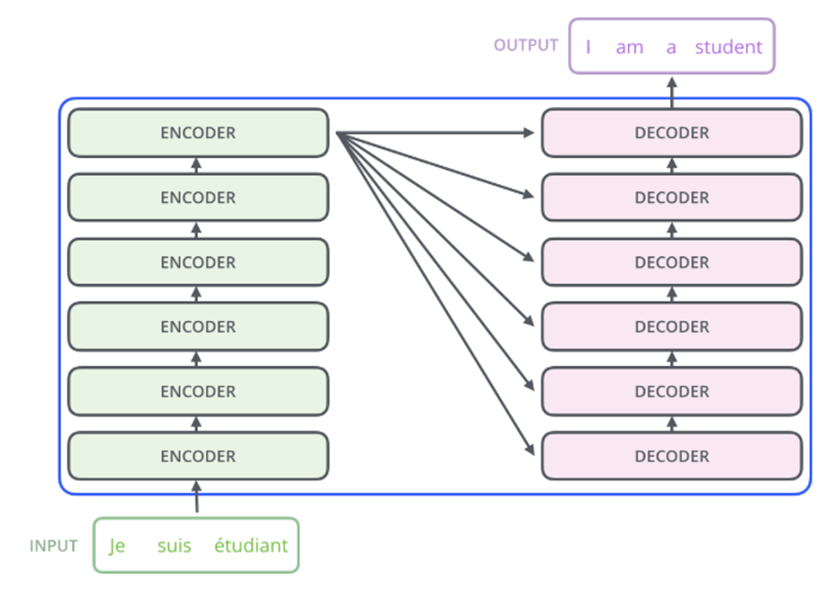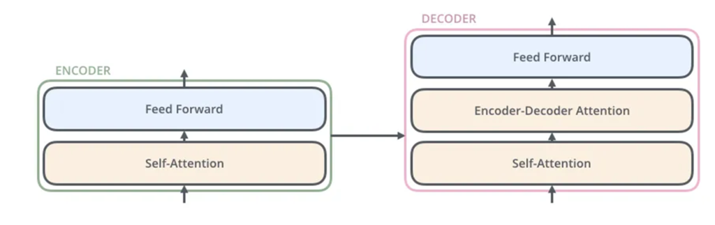 위에 사진중 Decoder 부분에 존재하는 Encoder-Decoder Attention 부분은 Encoder의 output을 key, value로 사용하고 디코더의 셀프 어텐션 부분에서의 결과를 쿼리로 사용하여 내가 번역하고싶은 언어와 번역할 나라의 언어의 attention을 학습하게됩니다.
