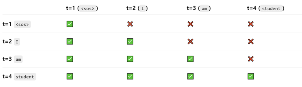 5. 학습할 때 디코더에 정답 sentence를 같이 넣어주면 next token prediction 과정에서 그냥 다음 정답 값 토큰을 보고 현재 출력을 예측하는 방향으로 학습이 shorcut에 빠지게 될 수 있는데, 이를 어떻게 방지하는지 설명해주시기 바랍니다.