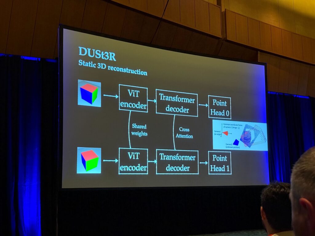 게다가 네이버 랩스에서 제안한 Dust3r의 엄청난 파급효과?로 인하여 CVPR에서 그의 후속 논문들이 쏟아져나왔습니다. 3D vision쪽 oral section 발표를 들어보면 15편 중 8편 정도가 Dust3r를 보완한 후속 논문에 속했던 걸로 기억합니다.