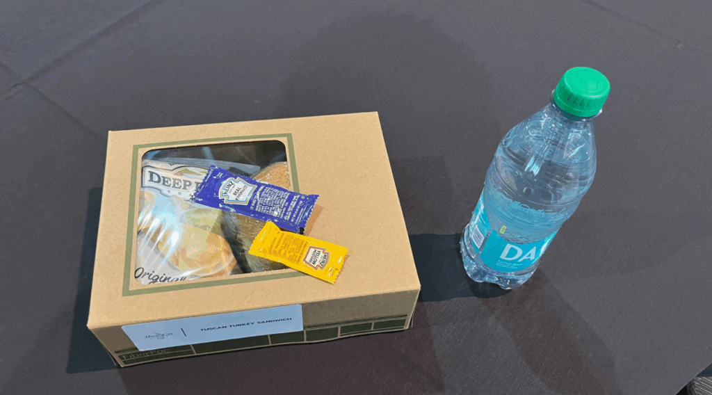 점심은 샌드위치, 샐러드, 비건 및 할랄푸드 등 뭔가 건강한 느낌으로 간단히 때울 수 있는 것들이 제공됩니다. 딱히 맛있어 보이는 게 없어서 첫째날에는 샌드위치를 골랐는데 상당히 맛이 별로더라구요.. 둘째날부터는 밖에서 사먹은 것 제외하면 모두 샐러드를 먹었습니다. 샐러드는 맛있었어요.