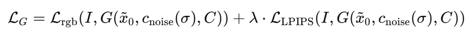 학습 시에는 총 8장의 시점 이미지를 물체 주변에서 균등하게 배치하고, 이 중 4장의 랜덤 뷰를 선택하여 supervision 신호로 활용합니다. 이때 사용되는 학습 손실 함수는 아래와 같습니다