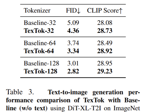 뿐만아니라 TexTok은 Generator에 이미 사용된 텍스트 임베딩을 그대로 tokenizer에서도 사용하므로, 텍스트 추출이나 캡션 생성에 추가 비용 없이 성능 향상을 달성할 수 있다는 장점이 있었습니다.