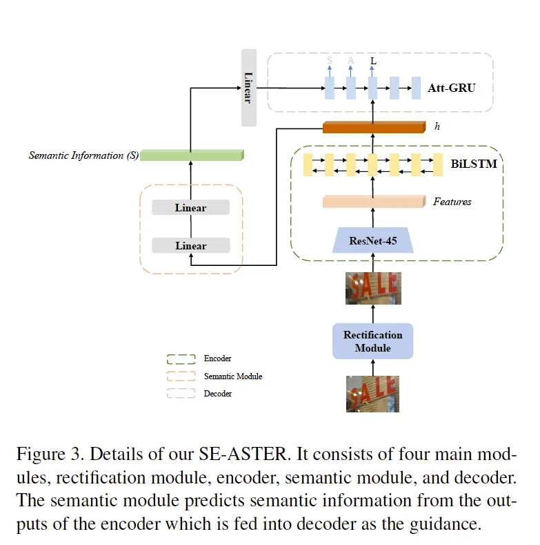 이 논문에서는 해당 프레임워크를 ASTER에 적용해 프레임워크의 유효성을 확인하였습니다. 저자는 이렇게 통합된 모델을 Semantics Enhanced ASTER (SE-ASTER)이라고 칭했습니다. 해당 모델의 구조도는 아래와 같습니다