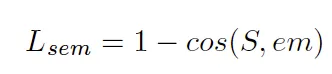 모델의 최종 출력인 텍스트 시퀀스에 대해 각 character에 대한 예측 확률을 가지고 GT와의 cross entropy가 계산된 것이 L_rec입니다. 그리고 L_sem은 예측된 semantic information과 실제 text transcription자체에 대해 FastText로 부터 나오는 워드 임베딩간의 cosine embedding loss를 구한 것입니다. 람다는 두 loss의 균형을 두기 위해 더한 하이퍼파라미터로 저자는 1로 설정하였다고 합니다. contrastive loss대신 cosine embedding loss를 사용한 것은 학습 속도를 빠르게 하기 위함이라고 합니다. 해당 loss는 아래의 식으로 구해질 수 있습니다.