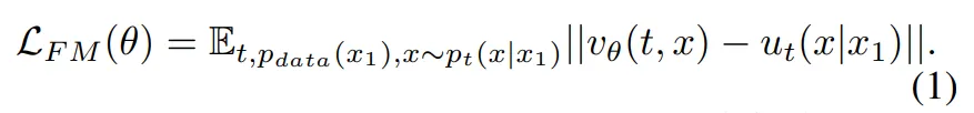 식(1)은 모델이 예측한 벡터 v_{\theta}가 실제 벡터 필드 u_t와 얼마나 유사한 지를 학습도록 합니다.