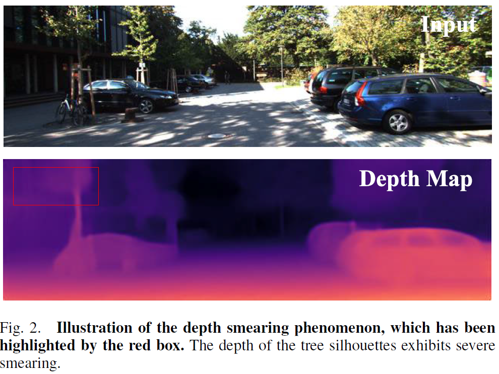 두번째 contribution은 자신들의 framework으로 학습시킨 depth model의 depth 값이 종종 번지는 현상이 발생하는데 이 문제를 완화시켜주는 기법이라고 하네요 (아래 그림2 붉은 박스와 같은 번짐 현상을 해결하려고 하는 것).