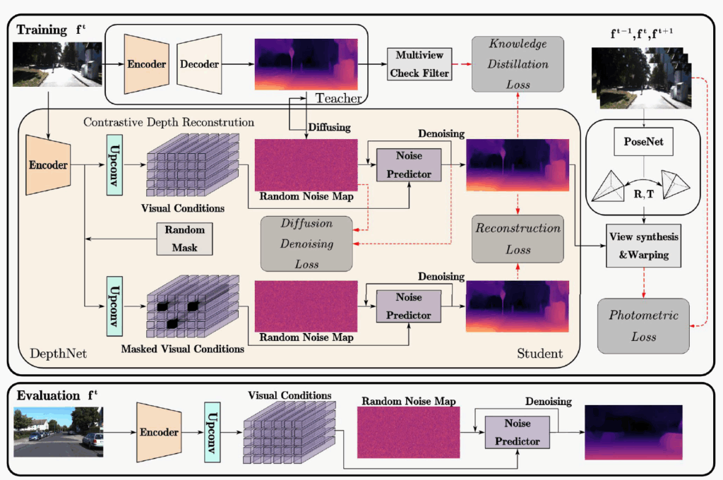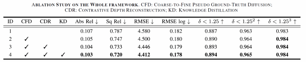 아무튼 그래서 저자들이 논문을 통해 제안하는 방법론은 크게 2가지로, 첫째는 coarse-to-find pseudo GT diffusion process를 만들었다는 점, 둘째는 contrastive depth reconstruction 방식을 제안했다는 점입니다.