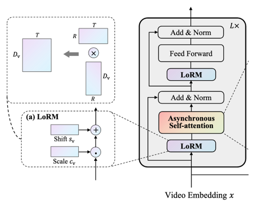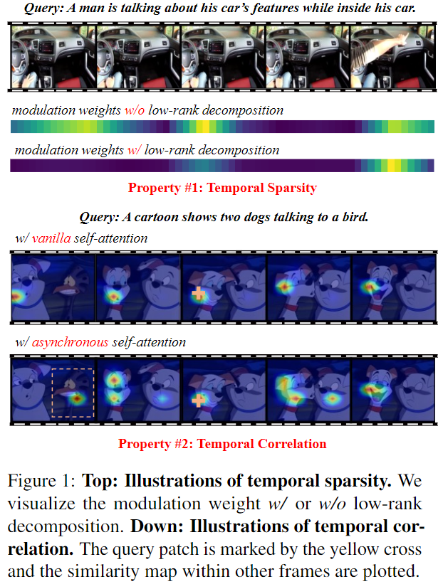 - Low-rank modulation: 비디오의 Temporal Redundancy 문제를 완화하기 위해 low-rank modulation module 사용
