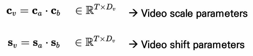 먼저 비디오의 경우, 프레임별로 CLIP에서 추출된 feature는 비디오의 시간적 특성을 잘 반영하지 못하고, 인접한 프레임 간 중복 정보가 많아 over-smooth한 표현이 생성되는 문제가 있습니다. 이를 해결하기 위해 저자는 Scale과 Shift 파라미터를 사용하여 중요한 프레임을 강조하고 덜 중요한 프레임은 억제하도록 합니다. 하지만 모든 레이어에 해당 파라미터를 추가하면 모델이 무거워지므로, 파라미터 수를 줄이기 위해 두 개의 작은 행렬 곱으로 구성된 low-rank 구조를 사용합니다.