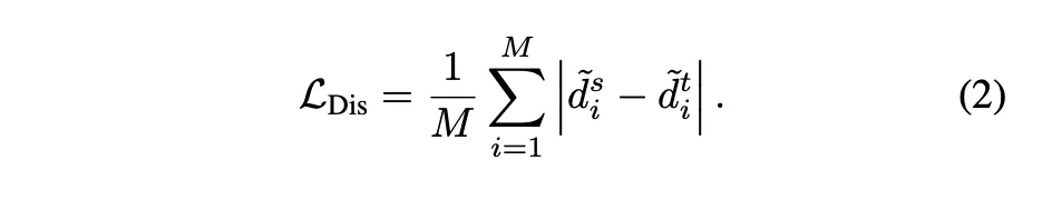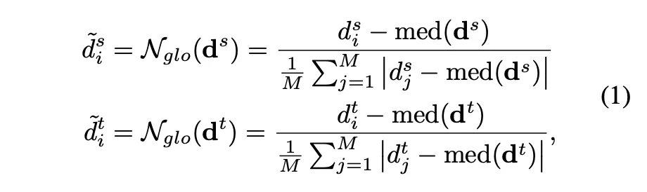 각 픽셀 i에 대해서 student 모델이 예측한 d^s_i와 teacher 모델이 생성한 pseudo depth d^t_i를 식(1)과 같이 변환할 수 있습니다.