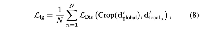 local-global distillation을 수식적으로 정의하면 식(8)과 같습니다.
