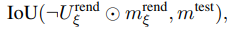 다음으로는 seen IOU는 현재 pose로 렌더링한 object mask중 확실한 영역과 (seen) 과 test image의 실제 object mask간의 겹치는 정도를 측정하였습니다. 실제 관측된 영역만을 기준으로 IOU를 계산하게됩니다