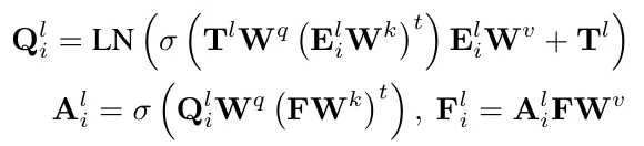 먼저 수평 방향의 재배열 과정을 설명 드리면, 이미지 피처 (F)의 행( F_i) 마다 multi-head self attention을 수행해 각 행의 피처들이 서로 가지는 관계를 나타내는 Attention Weight (M_i)^ h을 학습합니다.