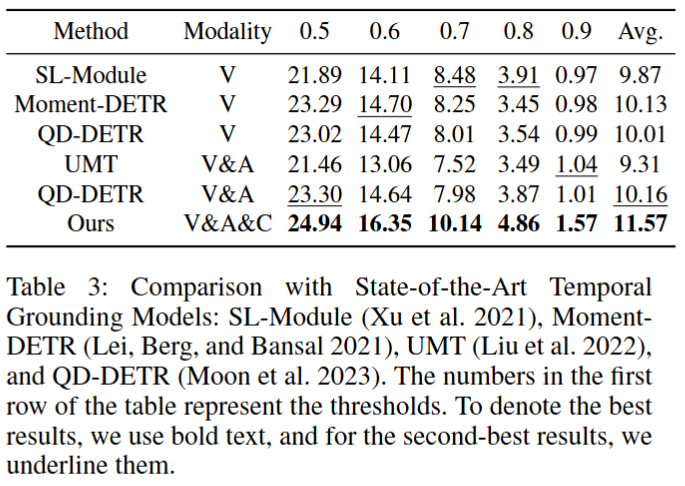 1) main results: comparision with temporal grounding models