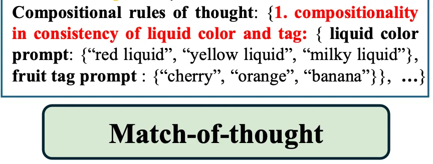 근데, 기존 LLM들은 이런 구성 규칙 기반의 추론을 좀 못한다고 하는데요. 이런 점을 보완하기 위해 제안된 것이 match-of-thought(MoT)입니다. 이 MoT는 기존 CoT에서 영감을 받은 것인데요.