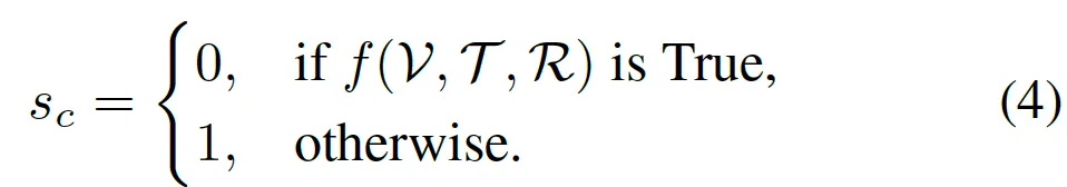 visual 정보 V, text 정보 T, 규칙 R을 넣었을 때 규칙을 만족한다면 True, 아니라면 False로 score가 1이 되게됩니다.