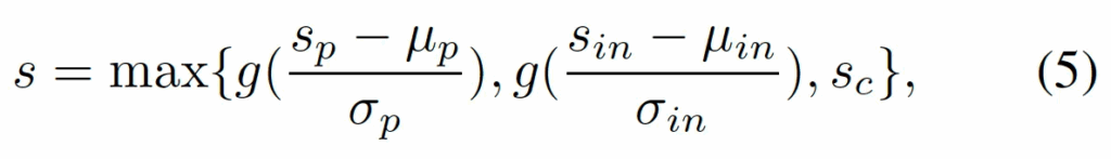 마지막으로, 앞에서 나온 세 anomaly score를 사용해 최종 output을 내야할텐데요. 이 세 anomaly score들은 각기 다른 방식으로 계산되기에 기준이 서로 다를 수 있습니다. patch는 dissimilarity고 composition은 0또는 1의 값만 갖는 것을 생각해보면 될 것 같습니다. 이걸 그대로 합치면 좀 그러니까, 본 논문에서는 이를 calibration하고 fusion하는 단계를 제안합니다.