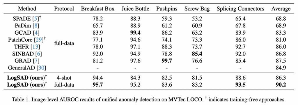 본 논문에서 제안된 LogSAD는 MVTec LOCO 데이터셋을 base로 실험을 하였습니다.